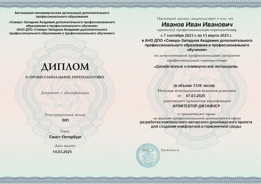 Каждый документ (диплом/удостоверение/свидетельство) соответствует п.2 ст.60 N-273 ФЗ, оформляется на русском языке, печатается на типографском бланке, защищённом от подделок. Ставится официальная печать образовательной организации. С образцами документов можно ознакомиться на сайте в разделе «Лицензия и документы».