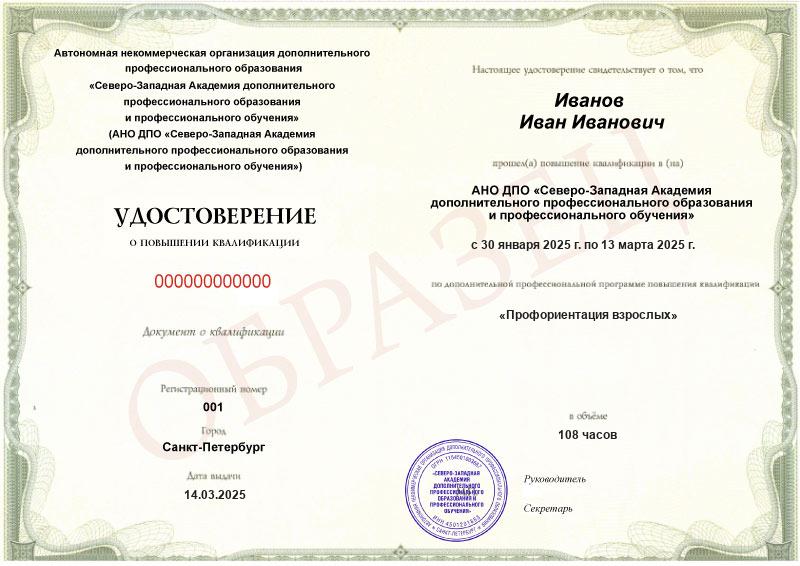 Каждый документ (диплом/удостоверение/свидетельство) соответствует п.2 ст.60 N-273 ФЗ. Диплом/удостоверение/свидетельство оформляется на русском языке, печатается на типографском бланке, защищённом от подделок. Ставится официальная печать образовательной организации. С образцами документов можно ознакомиться на сайте в разделе «Лицензия и документы».