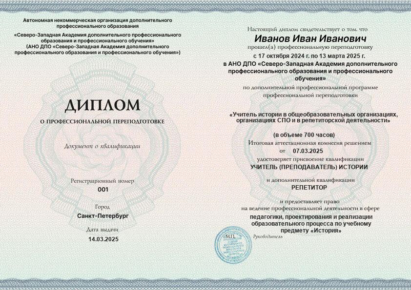 - 2 квалификации: Учитель (преподаватель) истории + Репетитор